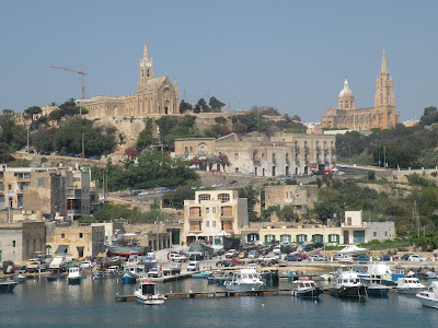 Primera imagen de Gozo, para el visitante, como se puede observar, ¡no faltan iglesias!